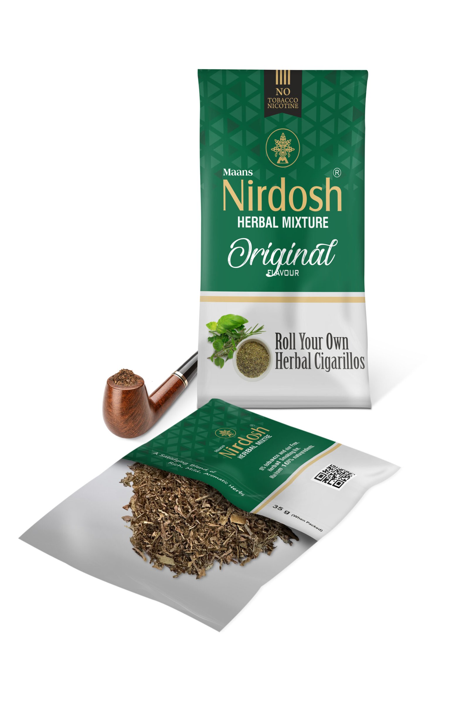 Nirdosh Herbal Dhoompan is a traditional hand-rolled Indian herbal smoking stick made from a selection of natural herbs.